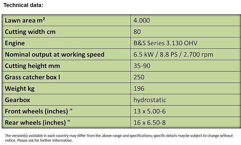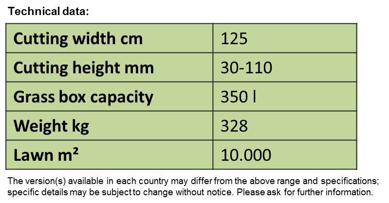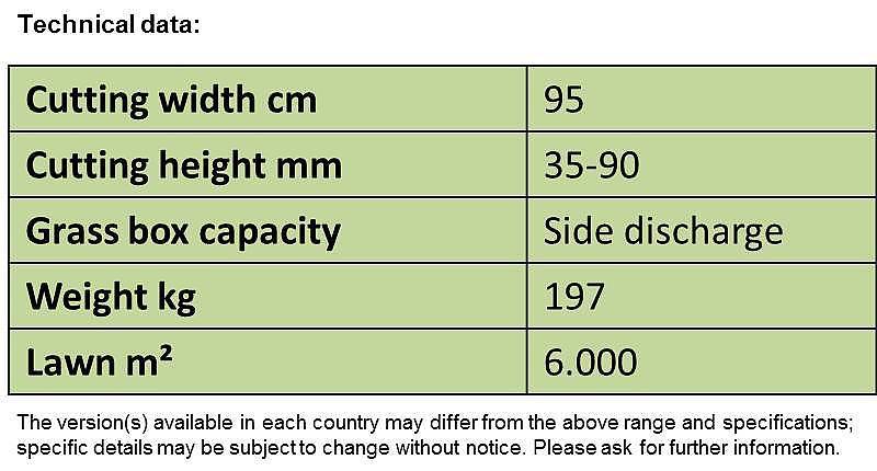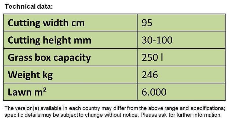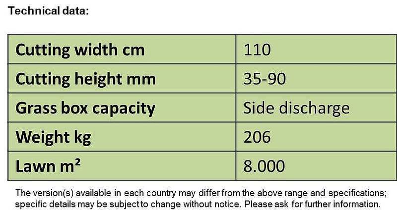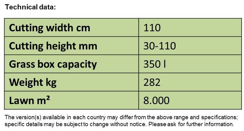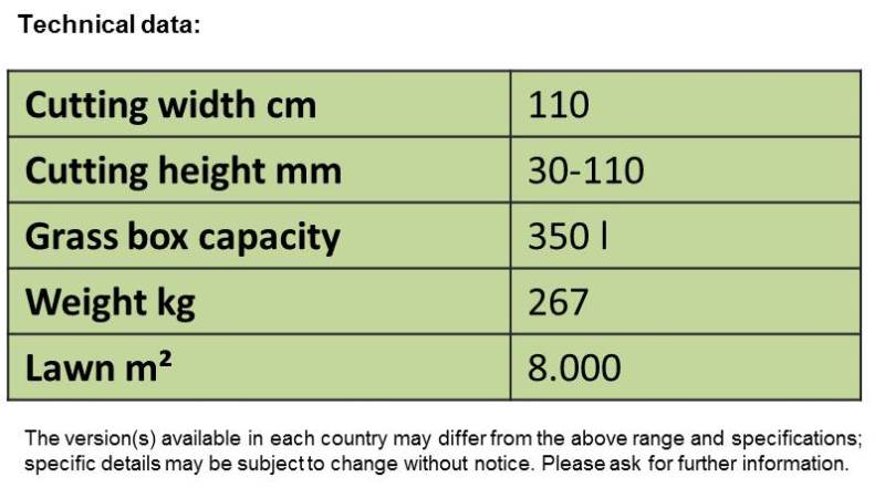 - extremely small turning circle - ideal for gardens with lots of trees and bushes. The compact design and unobstructed forward view ensure a high degree of manoeuvrability